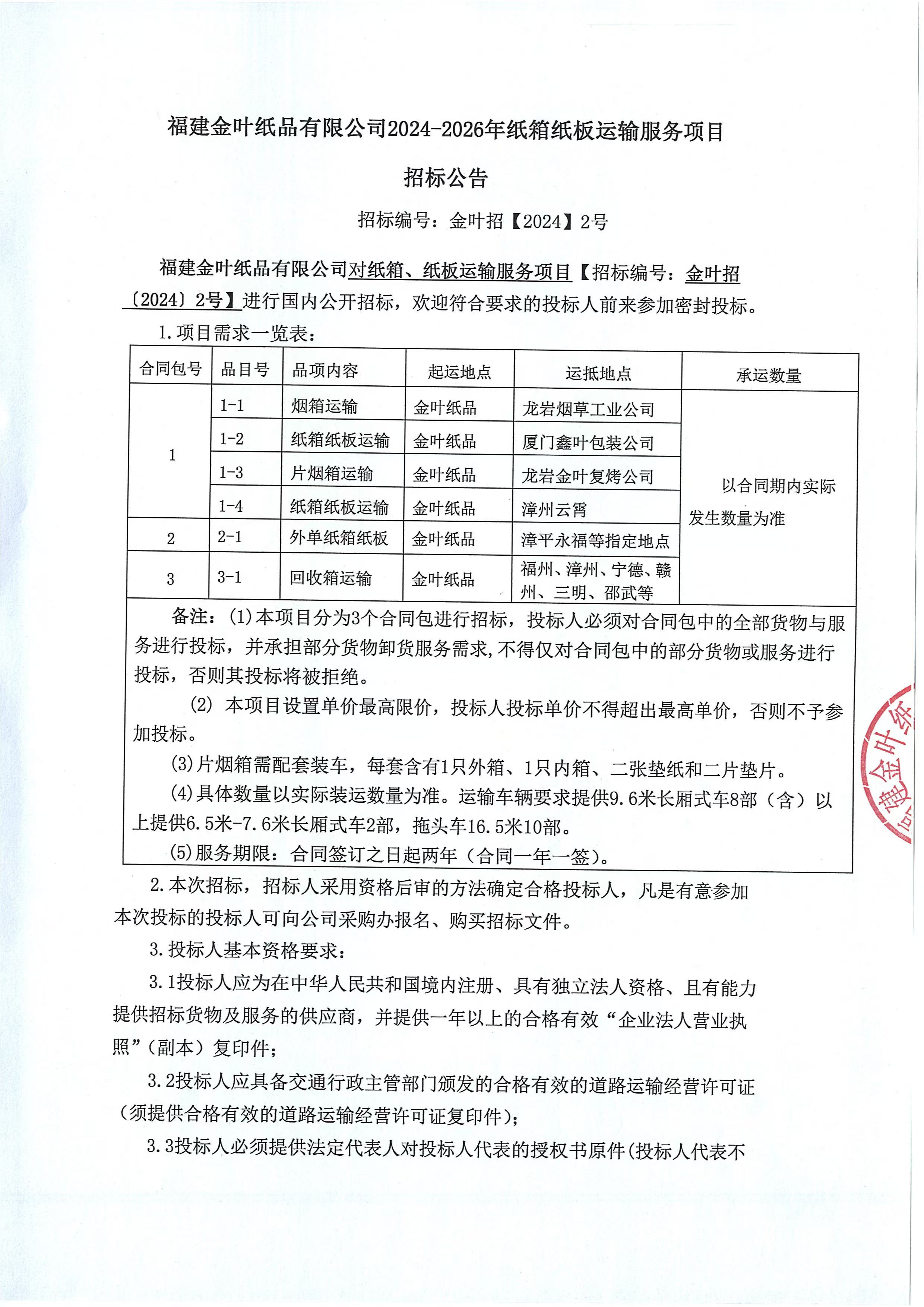 2024-2026年度紙箱紙板運輸服務項目